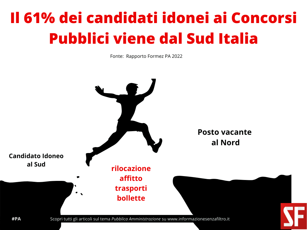 Altro fattore scoraggiante è lo spostamento da Sud a Nord. Il 61% dei candidati idonei è residente in Campania, Puglia, Basilicata, Calabria e Sicilia, mentre la maggiore quantità di posti disponibili è nelle Regioni centro-settentrionali, dove il costo della vita è diventato difficilmente sostenibile per una persona, o peggio una famiglia, che dovrebbe campare con il solo reddito d’ingresso nella pubblica amministrazione – in media 1.500 euro. In città come Roma o Milano o Firenze, a stento si pagano fitto, bollette e trasporti. L’esempio probante fatto da Formez PA è l’ultimo concorso bandito dal ministero della Giustizia per addetti agli Uffici di processo: le rinunce in una sede del Sud sono state il 10%; al Centro il 17%; al Nord il 19%, dove maggiore è la carenza di personale.